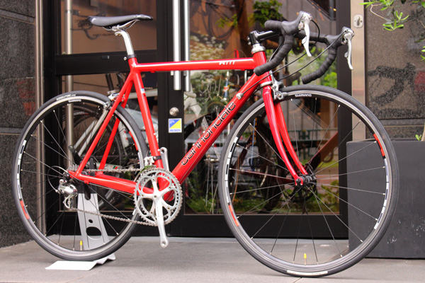 | アメリカ製、塗装の仕上げや美しく切削された溶接痕が素晴らしい、 恐らく94年製と見受けられるキャノンデール R800が入荷しました。 一見、単色のレッドカラーに見えますが ソリッドのレッドにグラデーションレッドが重ねられた、 なんとも美しいカラーリングが特徴の1台。 コンポーネントは往年の名コンポ、7400系デュラエースをメインで採用。 8速となりますが、確かなクリック感、タッチの良さは流石デュラエース。 ホイールこそR500ですが、古き良き時代のアメリカンアルミロードは 現代のアルミレーサーとはまた違った、しなやかに走る喜びと所有欲を味わせてくれる事でしょう。 今や希少となりつつあるUSAハンドメイドのキャノンデール。 14年前とは思えない程の塗装の美しさは必見です。 |